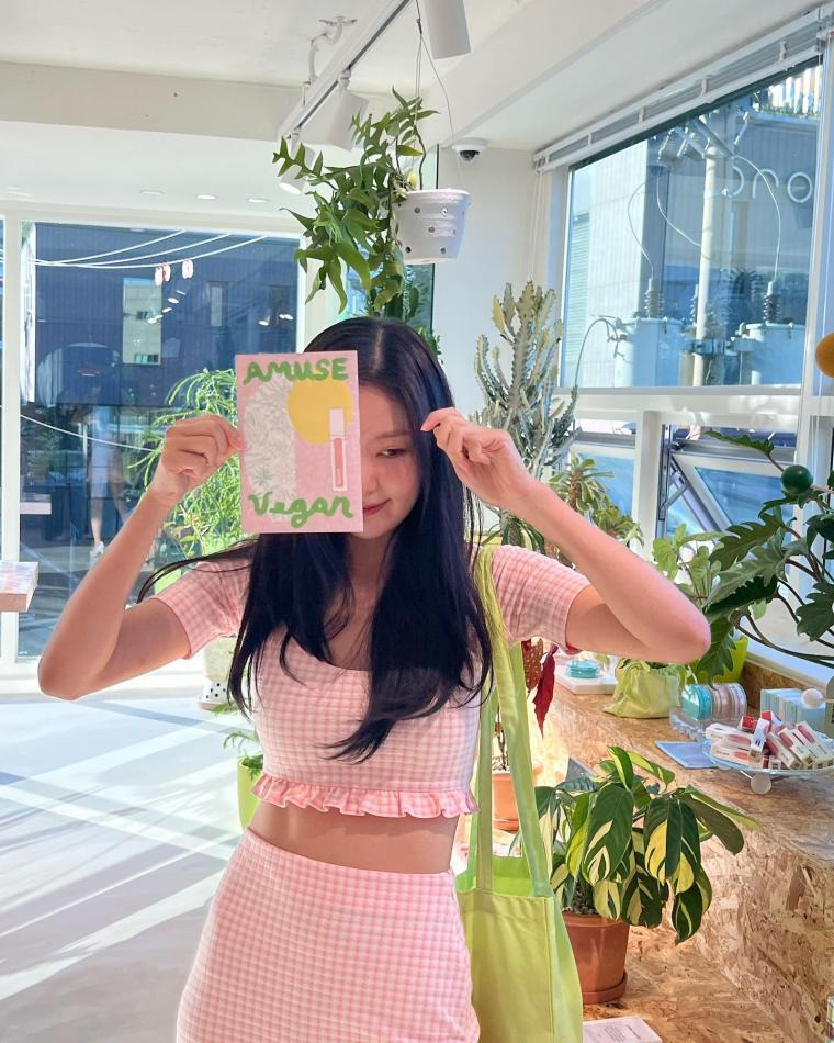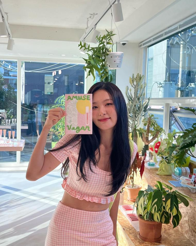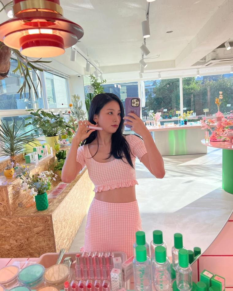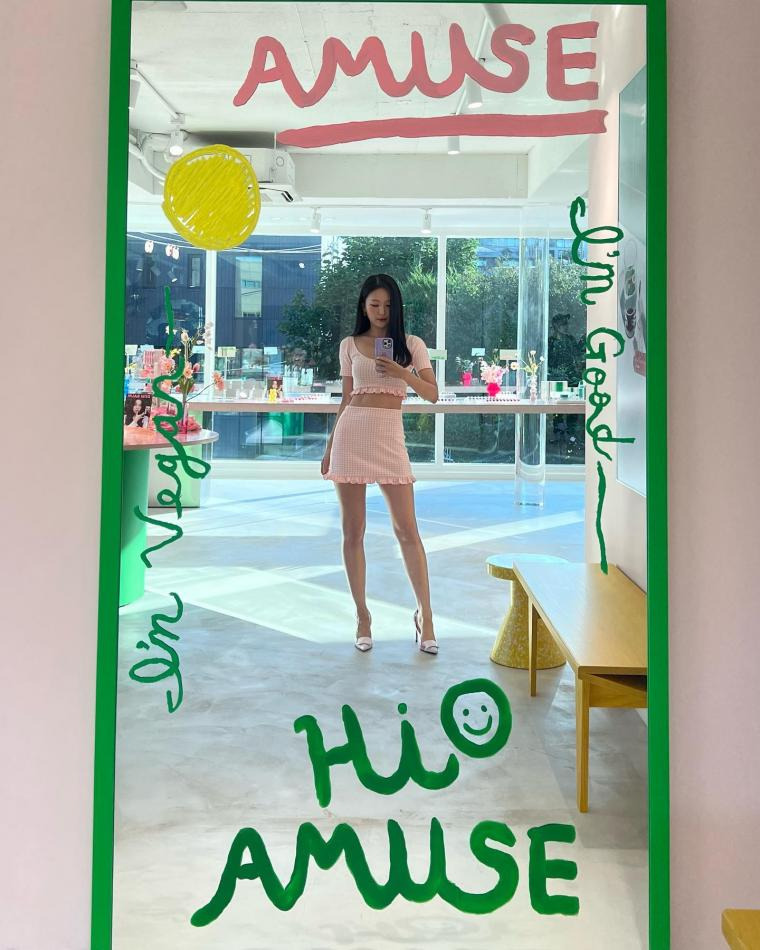 늘씬한 핑크체크 슬기 레드벨벳 인별 and 언더아머 엘르