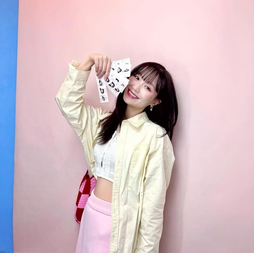 스티커 사진 찍은 거 팬들한테 나눠주고 다니는 러블리즈 류수정