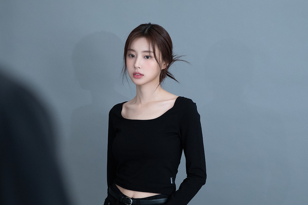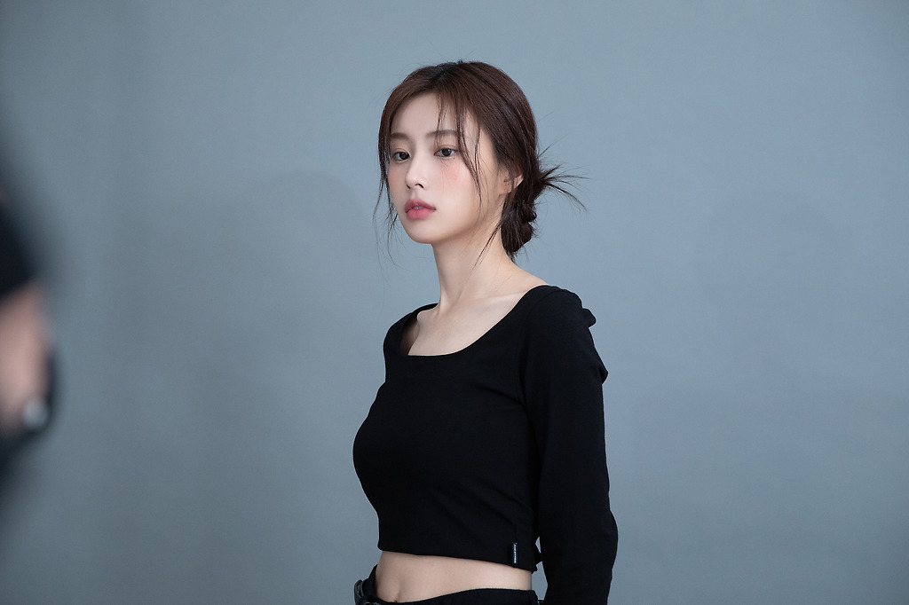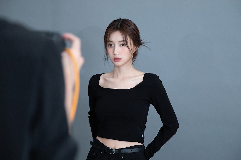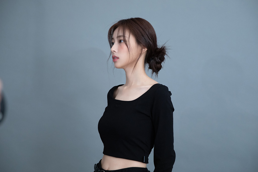 프로필 촬영...블랙 크롭티를 입은 강혜원 미모와 몸매