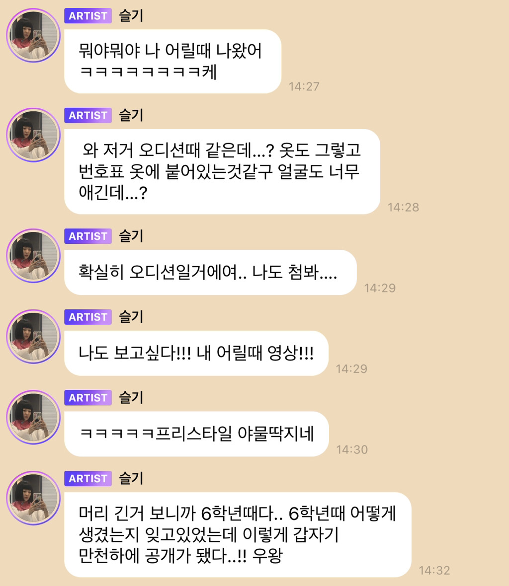 SM이 갑자기 풀어버린 슬기 오디션때 모습 움짤 0 927 0 2022.04.16 다음 페이지 이전 페이지 초딩 6학년때라고… 출처 : https://cafe.daum.net/ 0 이전글2022 새해 인사 아이유 다음글IZ*ONE, 권은비 비밀리에 .... 유정 리나 댓글[0] 로그인한 회원만 댓글 등록이 가능합니다. 네이버 뿜 댓글[] 네이버 뿜 댓글 쓰기