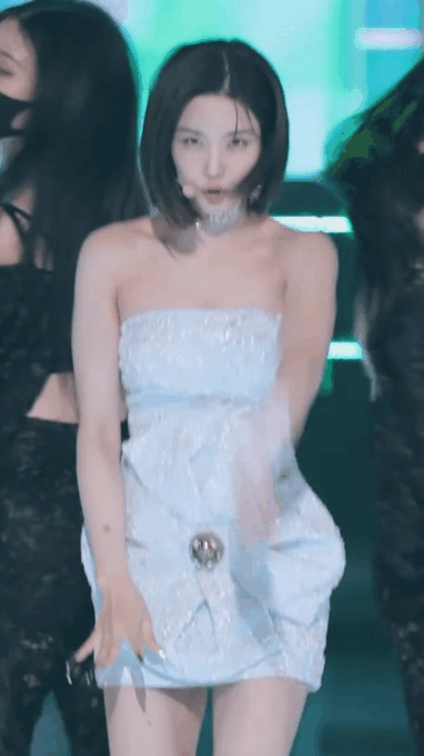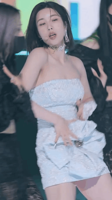 계단에서 튜브탑 ... 권은비... 근접샷 ...