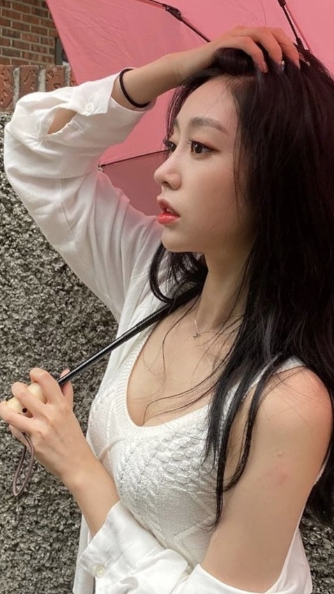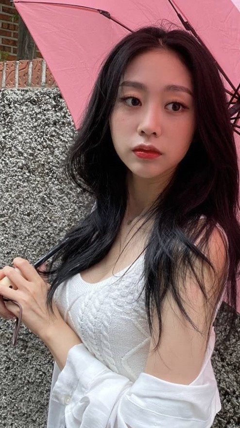 분홍 우산 쓴 러블리즈 서지수...꽈배기 니트나시 은근함 ...
