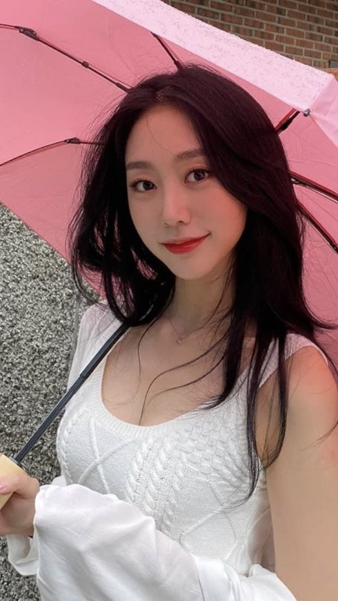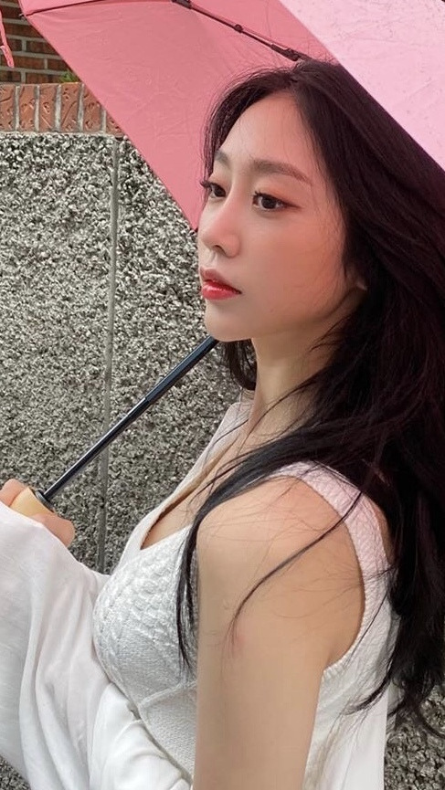 분홍 우산 쓴 러블리즈 서지수...꽈배기 니트나시 은근함 ...