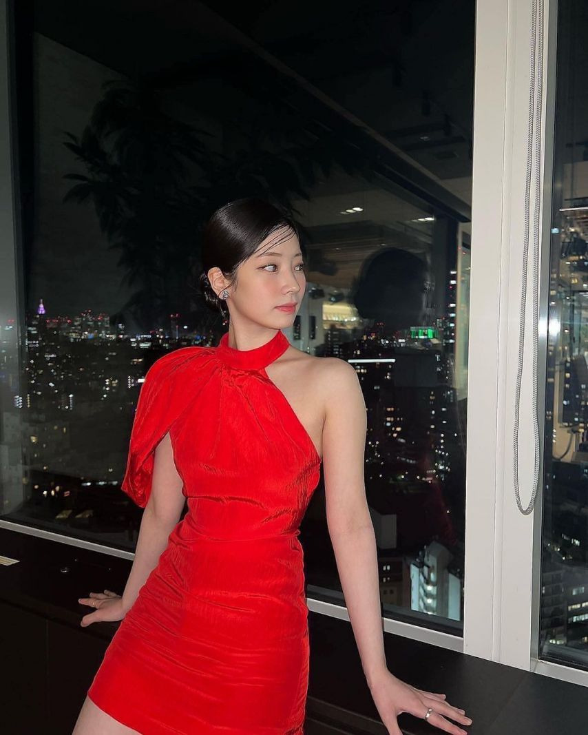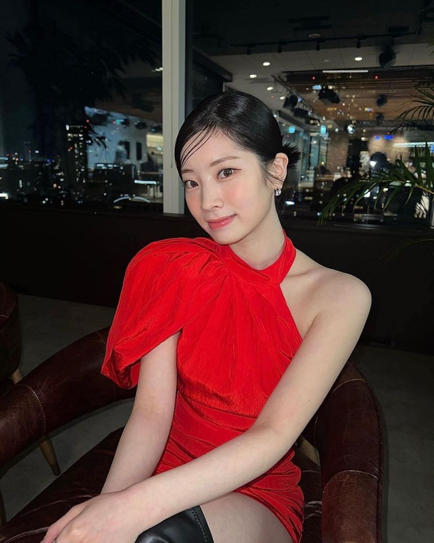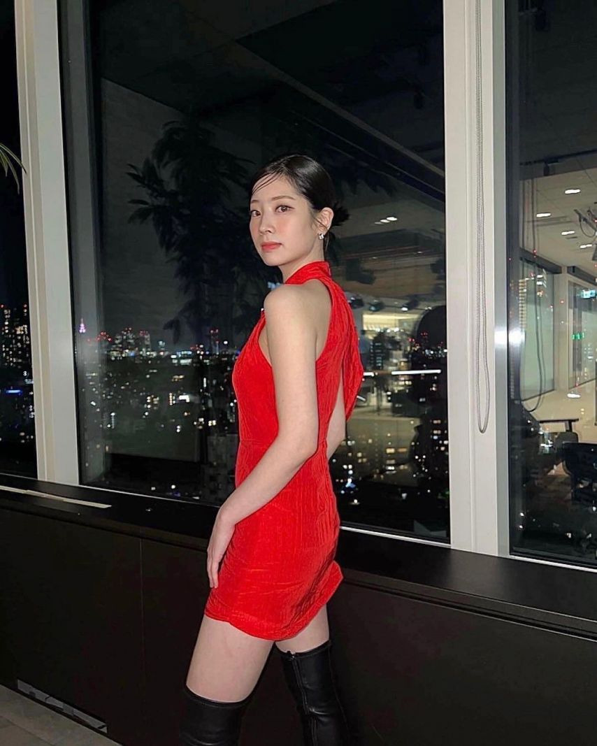한쪽 어깨를 드러낸 트와이스 다현 다리 꼰 다리 and 힙라인