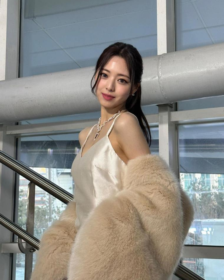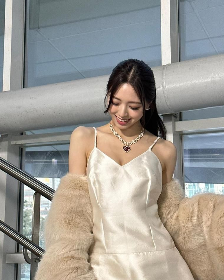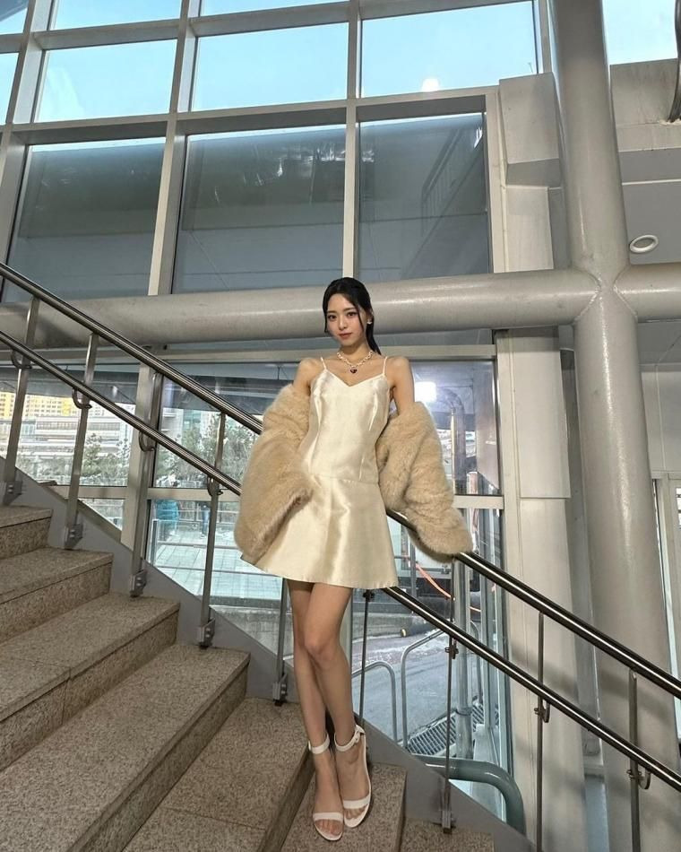 화이트 실크 슬립원피스 몽실자신감있는 and 팔 라인 있지 유나