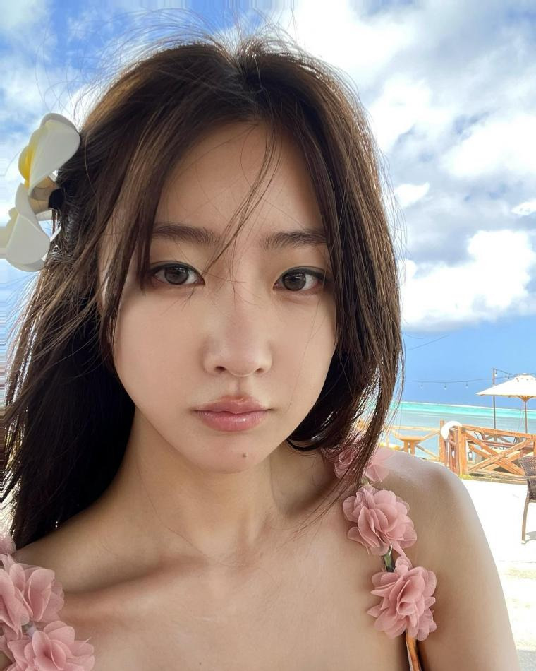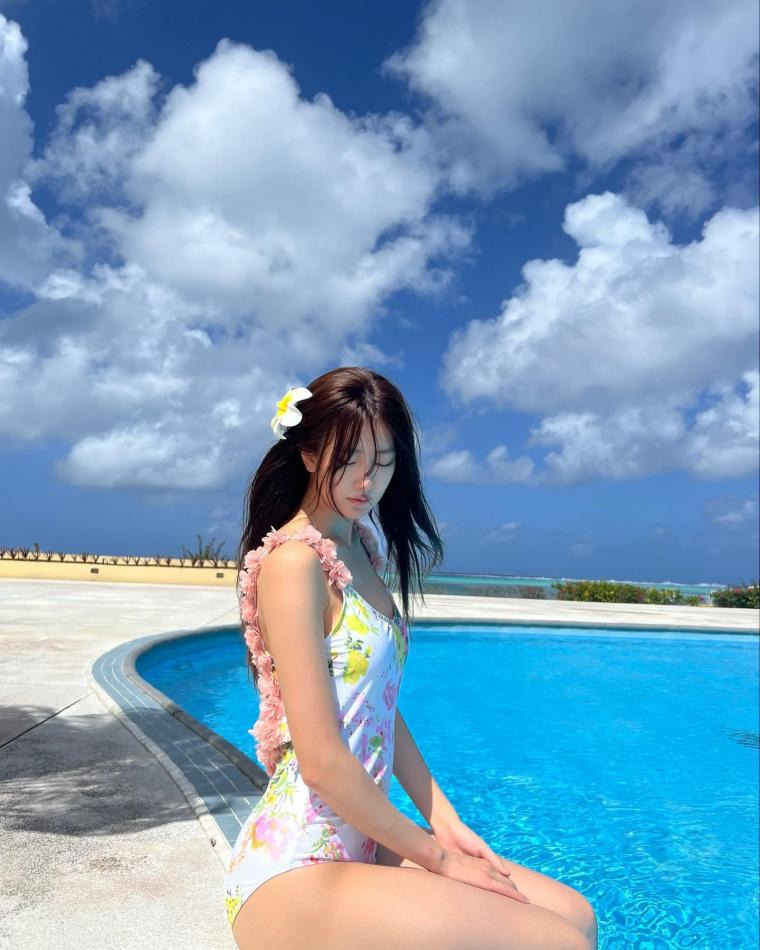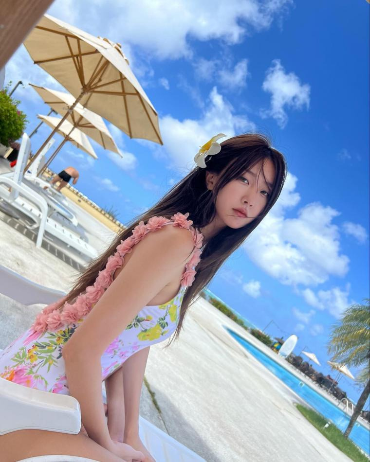달수빈 수영장에서 하얀 꽃무늬원피스 수영복 늘씬한 다리 몸매