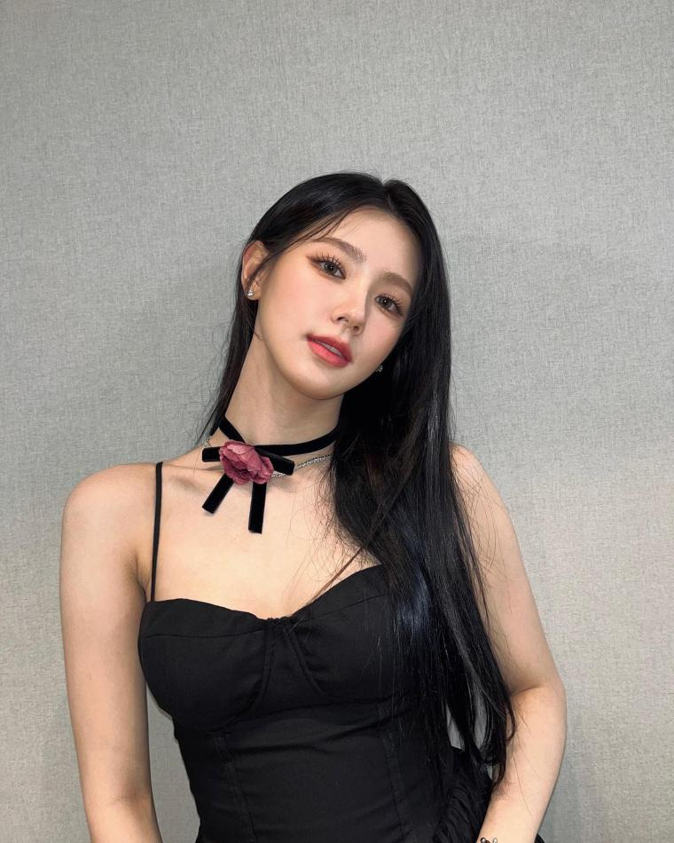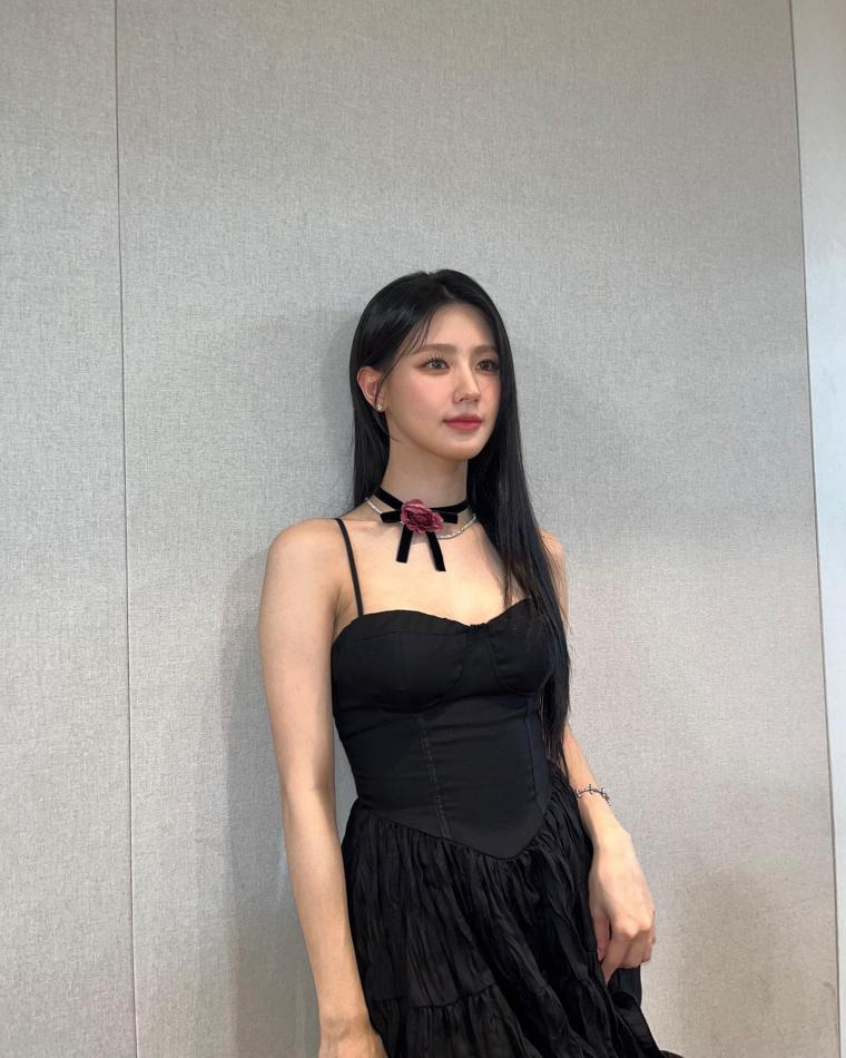 (여자)아이들 미연 블랙 란제리룩 원피스 팔 라인