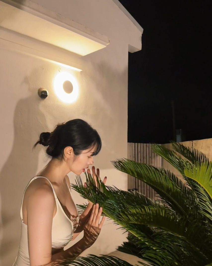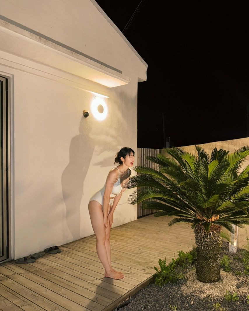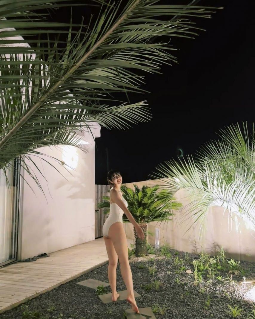 제주도에 간 서동주 흰 모노키니 수영복 건강한 자신감있는 - 인스타