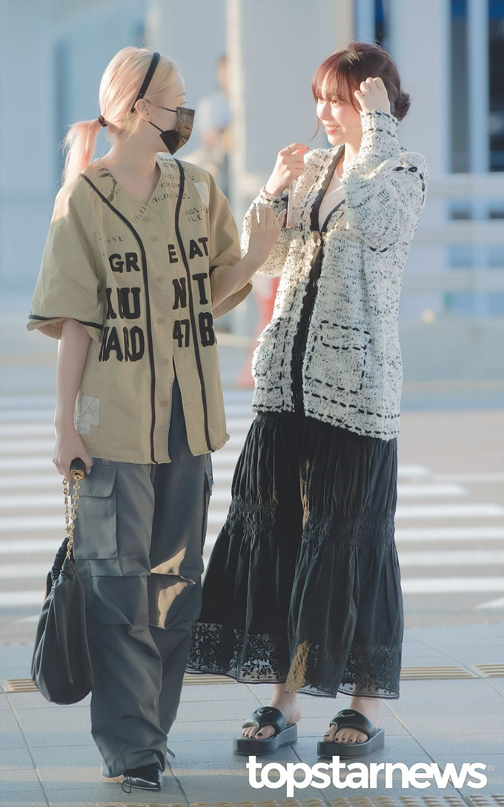 막 잠에서 깬 상태로 공항 나온 에스파 카리나 푸시시한 미모