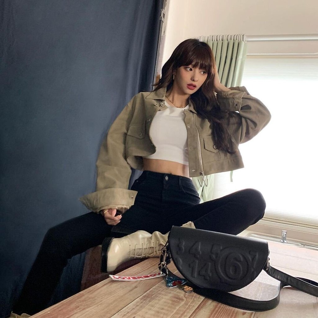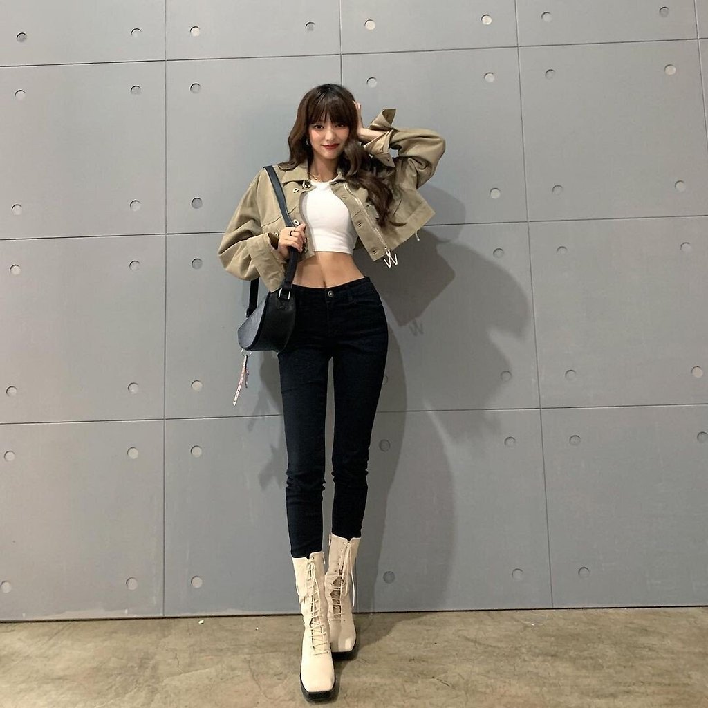 드라마 촬영중인 프로미스나인 이나경 흰크롭티 and 블랙진 미모