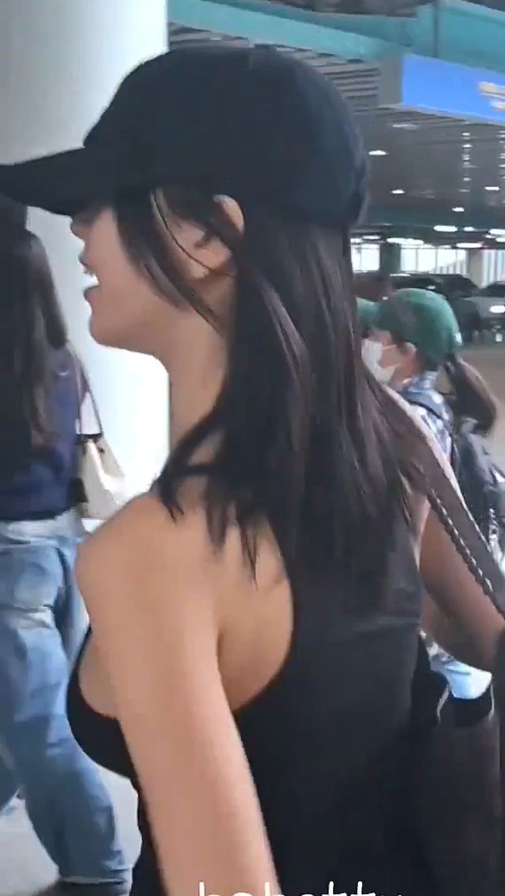 Natty of KISS OF LIFE showcases a casual and comfortable airport fashion that highlights minimalism. She opts for an all-black ensemble, creating a chic yet understated style. The combination of a simple sleeveless top and a baseball cap emphasizes a natural, unadorned charm, demonstrating a sophisticated vibe that maintains a streetwear sensibility even in comfort.