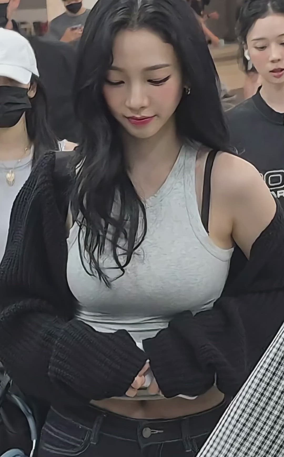 카리나는 편안하면서도 트렌디한 캐주얼 스타일을 선보이고 있습니다. 밝은 회색의 크롭탑과 검은색 크롭 가디건을 매치하여 상의는 슬림한 실루엣을 강조하며, 하의로는 다크 워싱 로우라이즈진을 착용하여 복부를 살짝 드러내는 과감한 연출을 하였습니다. 전체적으로 미니멀리즘적인 색상 조합과 디자인으로 세련되고 시크한 분위기를 자아냅니다. 활동적이면서도 스타일리시한 매력이 돋보이는 착장입니다.