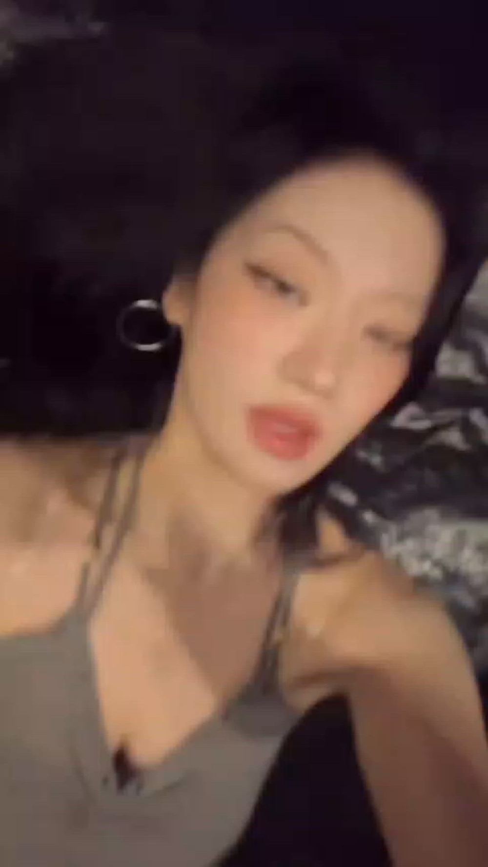 Siyoon is wearing a grey camisole top. It features thin spaghetti straps and a V-neckline, with a slim fit that moderately accentuates her figure, offering a comfortable yet feminine silhouette. The material appears to be a soft cotton blend or ribbed knit, adding to the casual feel. Similar styles are available from brands like Acne Studios or Aritzia.