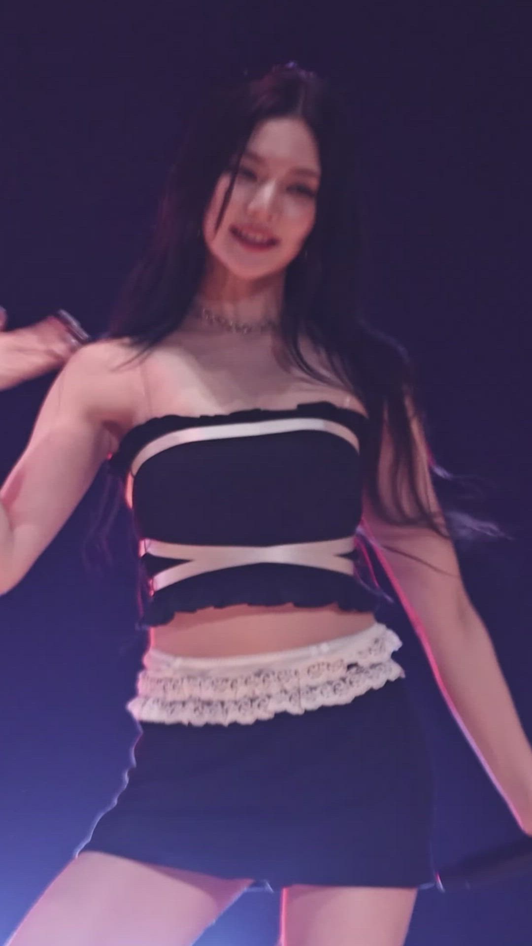 이사는 무대 의상으로 보이는 글램룩 스타일을 연출했습니다. 블랙 컬러의 튜브탑과 미니 스커트를 매치하여 시크하면서도 발랄한 분위기를 자아냅니다. 상의는 크롭 기장으로 허리 라인을 강조하며, 하의 스커트의 레이스 디테일이 여성스러움을 더해줍니다. 전체적으로 세련된 패션 감각을 보여줍니다.