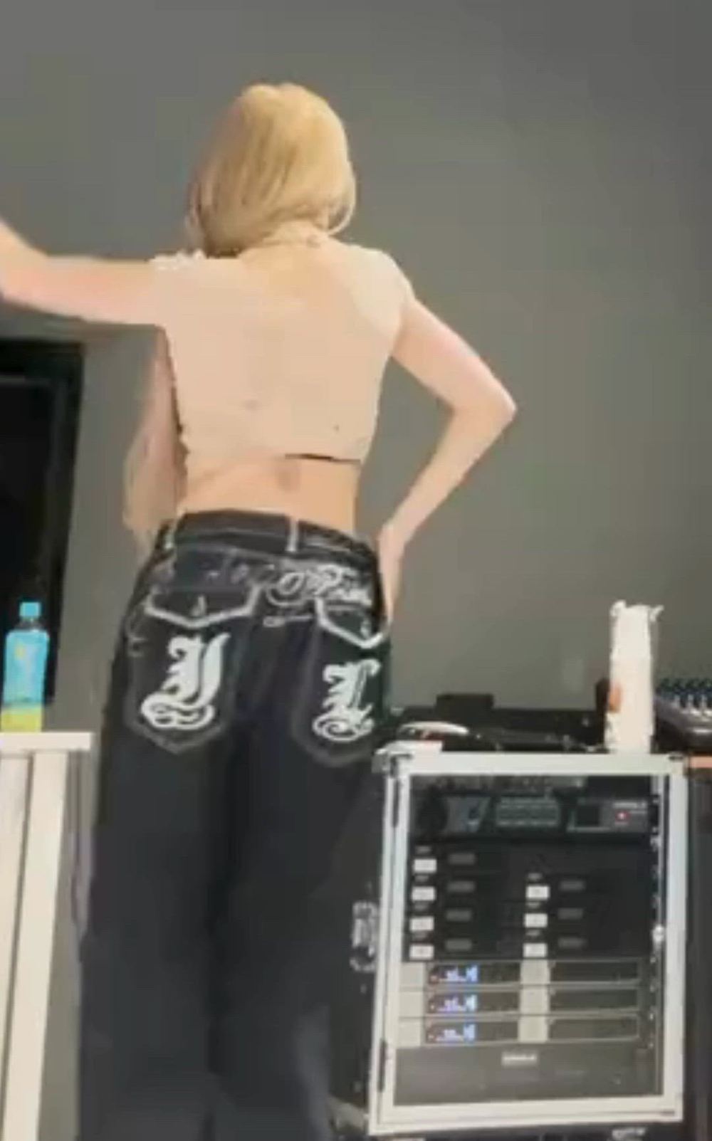 KISS OF LIFE의 벨은 활동적인 스트리트 스타일을 선보입니다. 루즈핏의 하의와 대비되는 짧은 상의를 매치하여 트렌디하면서도 개성 있는 패션 감각을 강조하고 있습니다. 전체적으로 편안하면서도 스타일리시한 분위기를 연출하며, 특히 크롭탑과 와이드 팬츠의 조화로 힙하고 자유로운 스트리트 감성을 표현하고 있습니다. 이러한 조합은 무대 위나 일상에서 모두 활용하기 좋은 실용적인 스타일입니다.