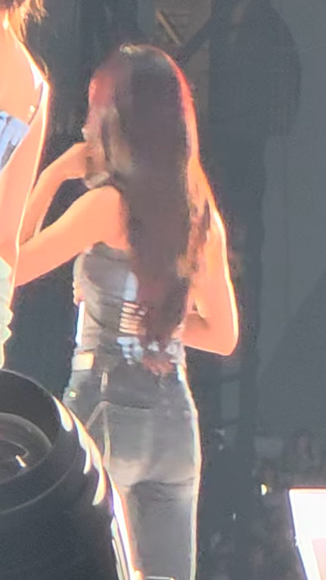 No specific accessories are clearly visible in the photo. However, considering the overall vibe of the performance attire, it is likely that subtle yet impactful items were worn to complement the look. For instance, a silver chain necklace or stud earrings could have helped complete the chic ensemble.