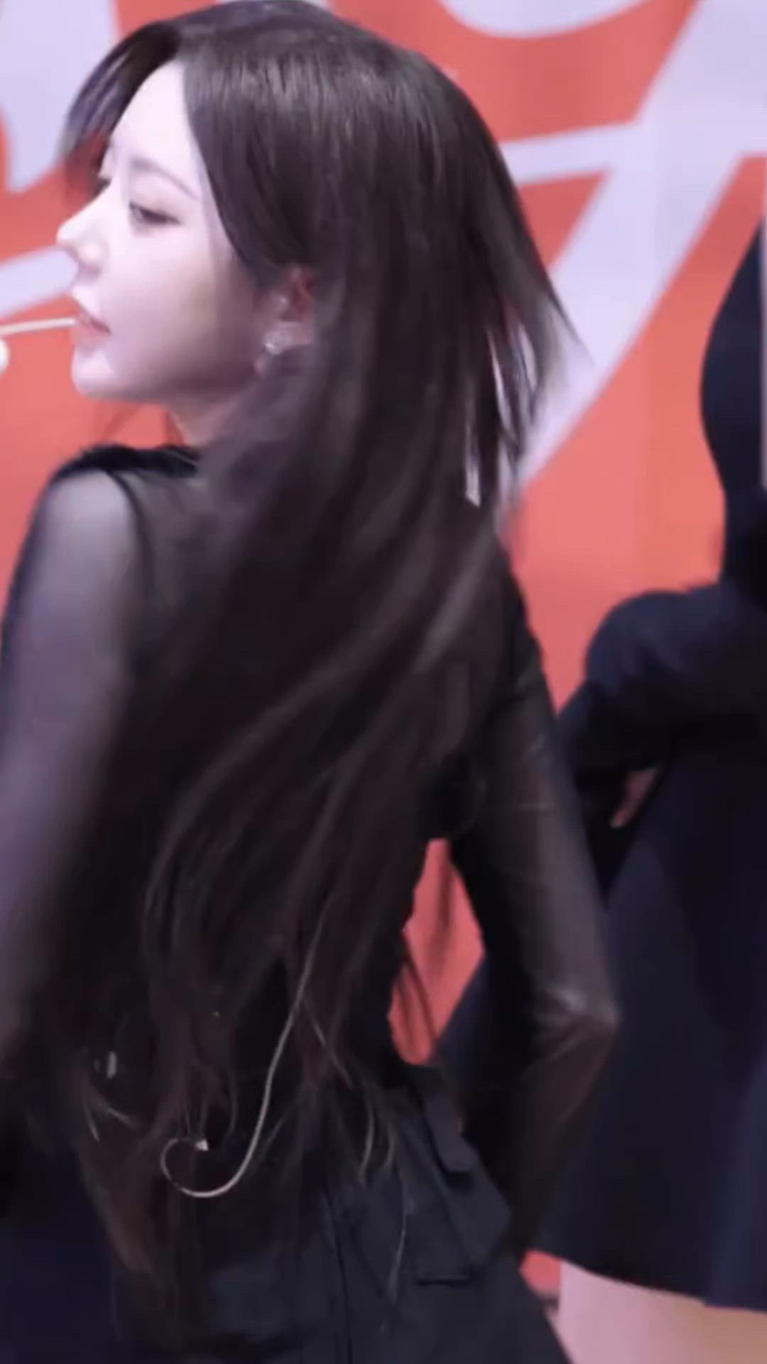 tripleS의 Hyerin은 시크하면서도 과감한 매력을 강조하는 의상을 선보였습니다. 블랙 시스루 상의와 하의를 매치하여 전체적으로 어둡고 신비로운 분위기를 연출합니다. 특히, 상의의 시스루 디테일은 독특한 디자인 요소를 더하며, 무대 의상으로도 손색없는 패션 스타일을 보여줍니다. Hyerin은 이러한 스타일을 통해 자신감 있고 카리스마 넘치는 모습을 완벽하게 표현하고 있습니다.