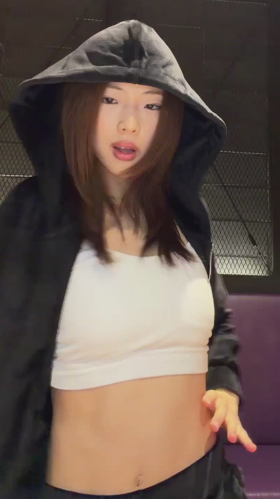 Ruka presents a comfortable yet hip streetwear style, pairing a black zip-up hoodie with a white crop top. The overall loose-fitting items create a natural and free atmosphere, while the crop top adds a trendy touch. This combination is ideal for everyday wear, offering both functionality and a stylish aesthetic.