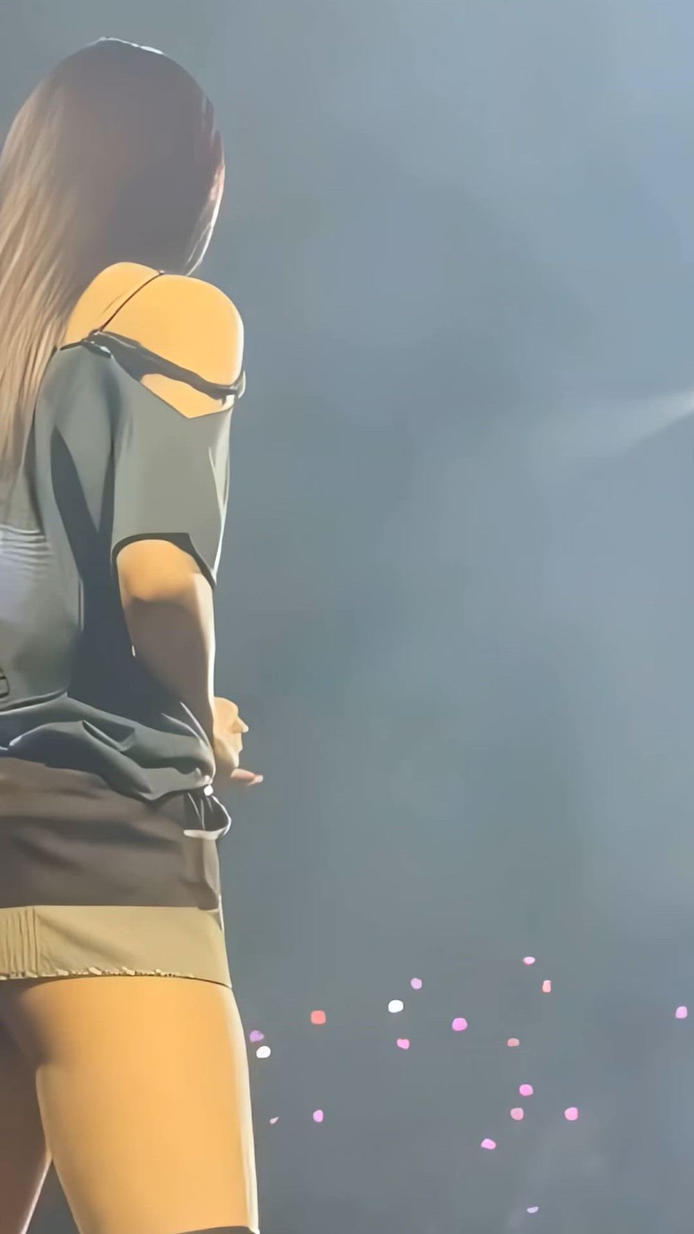 쯔위는 어두운 색상의 상의와 밝은 색상의 하의를 매치하여 세련되고 활동적인 무대 의상을 선보입니다. 특히 한쪽 어깨가 드러나는 상의의 독특한 디자인은 쯔위의 개성을 강조하며, 전체적으로 편안하면서도 스타일리시한 트렌디 스타일링을 완성하고 있습니다. 이러한 조합은 캐주얼하면서도 힙한 분위기를 연출하여 퍼포먼스에 적합한 매력을 더합니다.