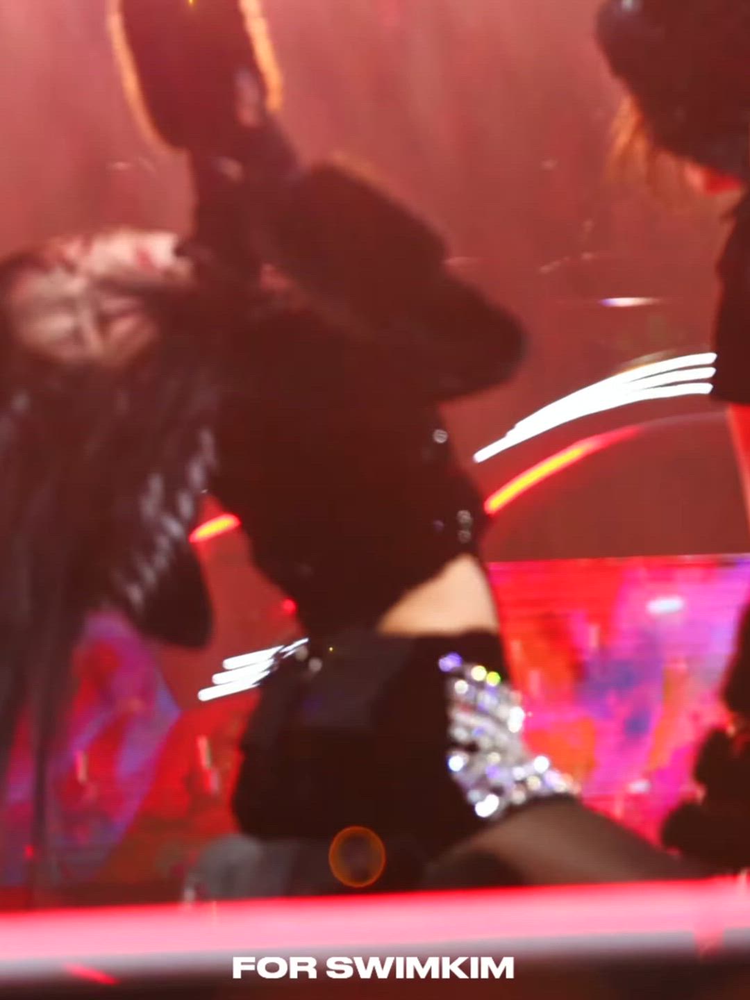 MEOVV Sooin은 무대 위에서 강렬한 블링블링 매력을 발산하는 무대 의상을 착용하고 있습니다. 전체적으로 어두운 계열의 상의와 하의에 화려한 시퀸 디테일이 더해져 역동적인 퍼포먼스에 최적화된 스타일을 연출하고 있습니다. 특히 하의의 반짝이는 장식은 조명 아래에서 더욱 빛나며 시선을 사로잡습니다. 이러한 의상은 Sooin의 활동적인 이미지를 강조하며, 카리스마 넘치는 무대 장악력을 더욱 돋보이게 합니다.