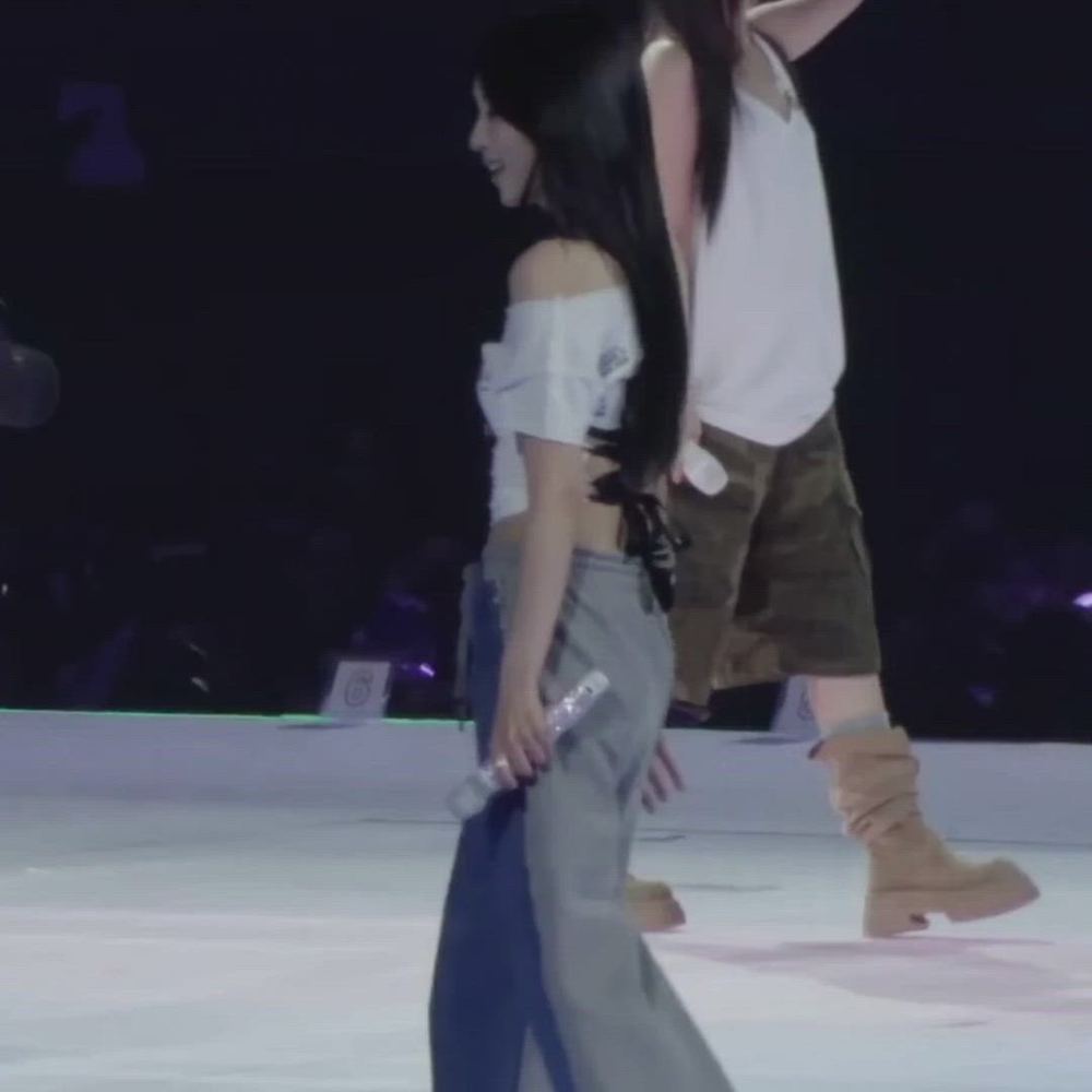 TWICE 미나는 무대 의상으로 컨템포러리 캐주얼 스타일을 선보입니다. 오프숄더 크롭탑과 투톤 와이드 팬츠를 매치하여 편안하면서도 스타일리시한 연출을 완성했습니다. 전체적으로 트렌디하고 활동적인 분위기를 강조하며, 미나의 매력을 돋보이게 합니다.