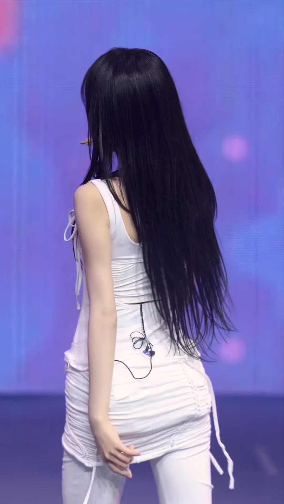 Jiyeon tripleS는 현대적이고 도시적인 감각이 돋보이는 무대 의상을 착용하고 있습니다. 화이트 컬러의 민소매 상의와 하의가 조화를 이루며, 전체적으로 슬림하면서도 활동적인 실루엣을 연출합니다. 특히 상의와 하의에 적용된 셔링 디테일과 스트링 장식이 개성 있는 스트리트웨어 스타일을 완성하며, 편안함과 스타일리시함을 동시에 추구하는 패션입니다. Jiyeon tripleS의 세련되고 트렌디한 매력을 강조합니다.