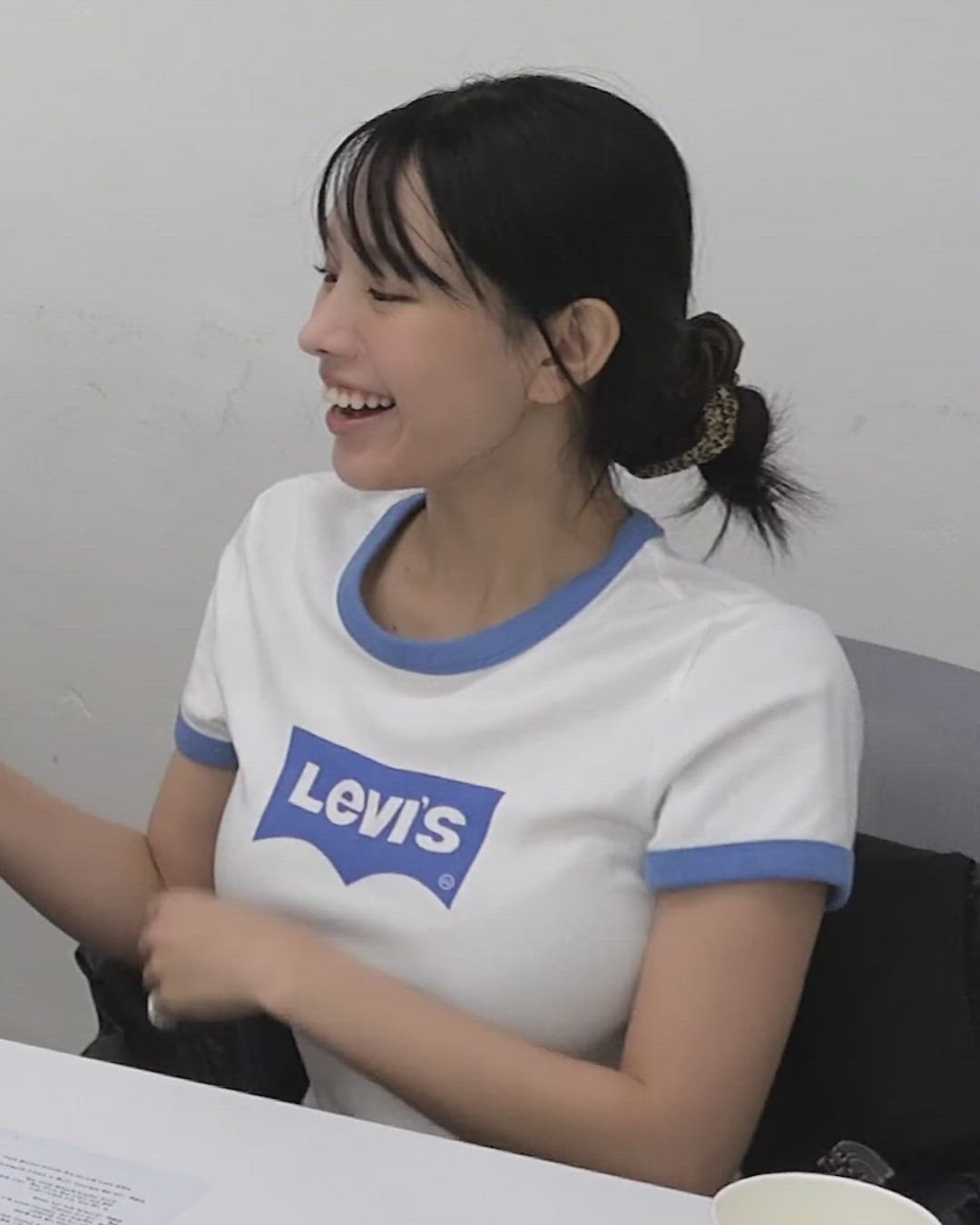 KISS OF LIFE's Natty is showcasing a casual and comfortable style. She presents an active look with a classic logo t-shirt and a hair accessory, demonstrating an overall relaxed casualwear aesthetic. The utilization of retro style elements contributes to a youthful and vibrant impression.