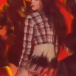 슈화는 강렬하고 펑크룩이 돋보이는 락시크 무대 의상을 선보이고 있습니다. 붉은색과 검은색이 어우러진 체크 패턴의 크롭 상의와 미니 하의를 매치하여 과감하고 스테이지룩에 적합한 스타일을 연출했습니다. 전체적으로 타이트한 핏으로 슈화의 슬림한 실루엣을 강조하며, 활동적인 퍼포먼스에 어울리는 유니크한 패션을 완성합니다.
