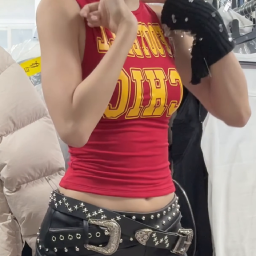 - 레드 그래픽 크롭 탱크탑: 강렬한 레드 컬러에 유니크한 프린트가 더해진 크롭탑으로, Diesel이나 Bershka에서 개성 있는 상의를 구입할 수 있습니다.