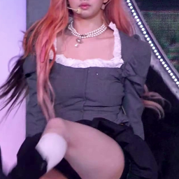 IVE 레이는 무대 의상으로 보이는 고급스러운 코르셋 스타일 상의와 미니 스커트를 매치하여 트렌디하면서도 사랑스러운 매력을 연출하고 있습니다. 특히 상의의 독특한 네크라인과 풍성한 소매 디테일이 시선을 사로잡으며, 여러 겹의 진주 목걸이로 럭셔리 패션 분위기를 더합니다. 전체적으로 발랄하면서도 우아한 감각이 돋보이는 스타일입니다.