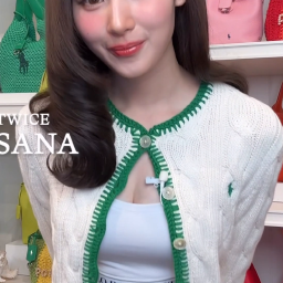 사나는 화이트 크롭톱과 크림색 케이블 니트 카디건을 매치하여 발랄하고 활동적인 캐주얼룩을 선보입니다. 상큼한 녹색 테두리가 돋보이는 이 니트웨어는 산뜻한 분위기를 연출하며, 특히 여름패션에 잘 어울리는 스타일입니다. 전체적으로 편안하면서도 세련된 느낌을 주는 패션입니다.