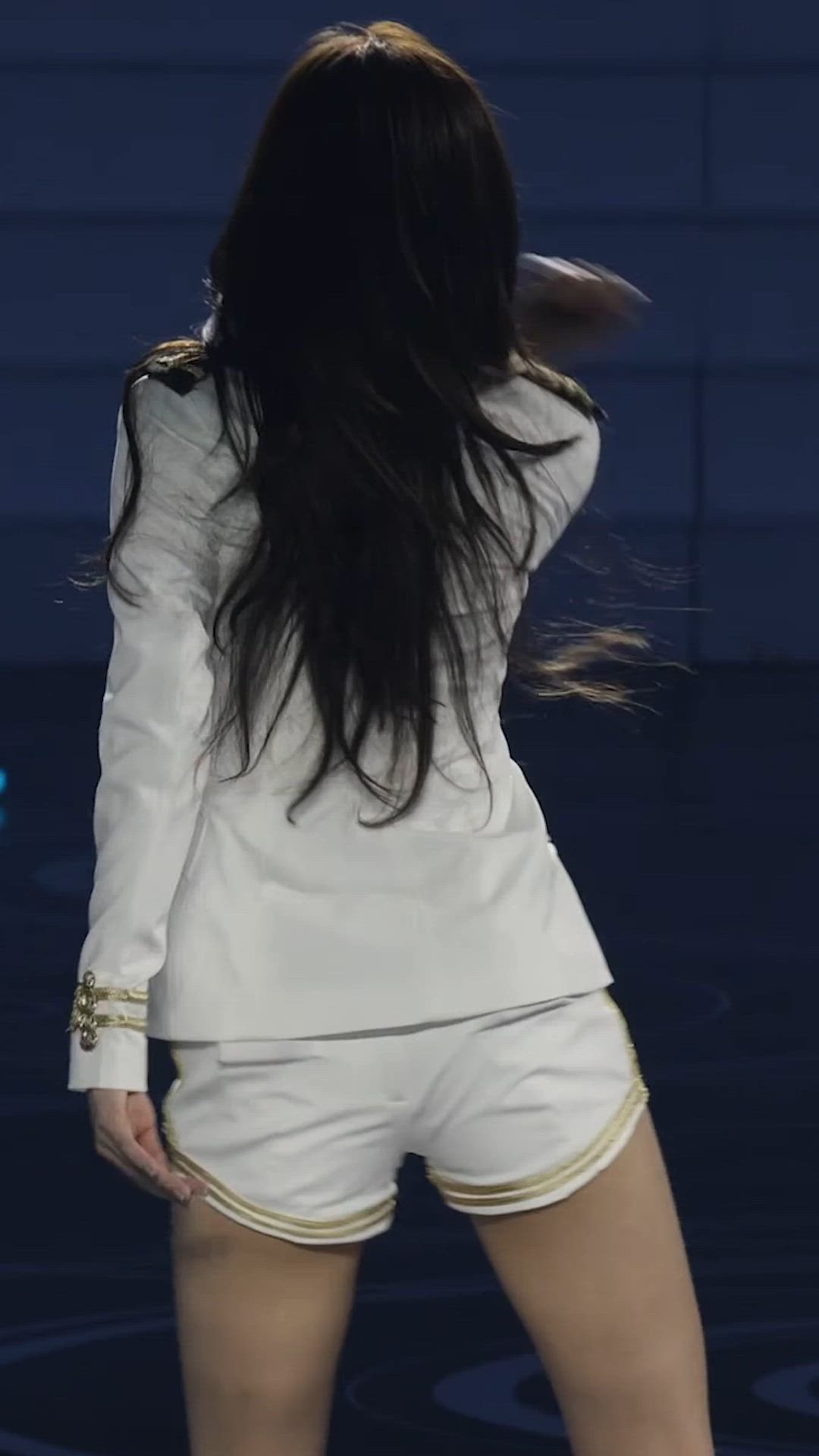 IVE's Yujin presents a luxurious fashion ensemble with a white military-inspired set. The neatly tailored jacket and shorts create a cohesive look, while the gold details throughout the outfit complete a glamorous fashion statement that captures attention on stage. This styling further highlights Yujin's sophisticated image.