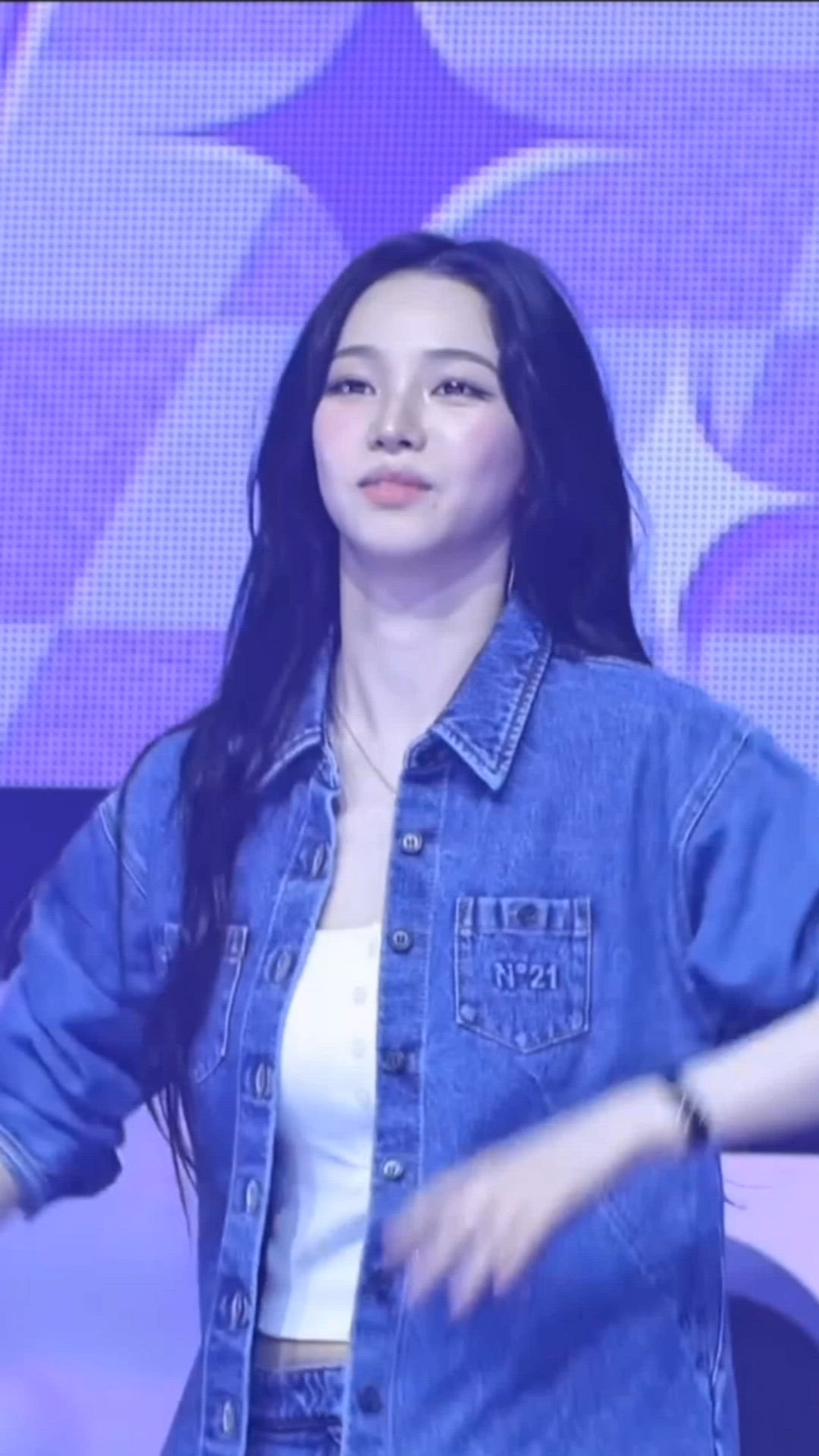 카리나는 캐주얼하면서도 트렌디한 스트리트 캐주얼 분위기의 패션을 선보이고 있습니다. 미드 블루 톤의 데님 재킷과 흰색 크롭 탑을 매치하여 활동적이면서도 세련된 아이코닉 스타일을 연출했습니다. 전체적으로 편안하면서도 스타일리시한 조합으로, 젊고 감각적인 매력을 강조합니다.