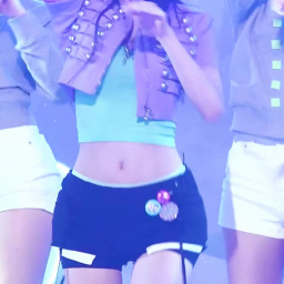 유나의 아이돌 무대 의상은 활기차고 경쾌한 분위기를 연출합니다. 라벤더 크롭탑과 민트색 브라탑을 레이어드하여 트렌디한 크롭탑 스타일을 선보이며, 블랙 숏 팬츠와 함께 스포티하면서도 개성 있는 스타일을 완성했습니다. 전체적으로 활동적인 퍼포먼스에 적합한 패션으로, 유나의 건강미와 시원한 매력을 강조합니다.