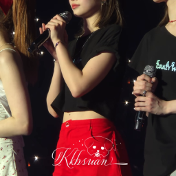 르세라핌 김채원은 무대 의상으로 활기차고 트렌디한 아이돌 패션을 선보입니다. 블랙 크롭탑과 강렬한 레드 하이웨이스트 쇼츠를 매치하여 활동적이면서도 스타일리시한 분위기를 연출했습니다. 특히, 상큼한 컬러의 헤어밴드와 실버 목걸이로 포인트를 주어 전체적인 크롭탑 스타일링에 생동감을 더했습니다.