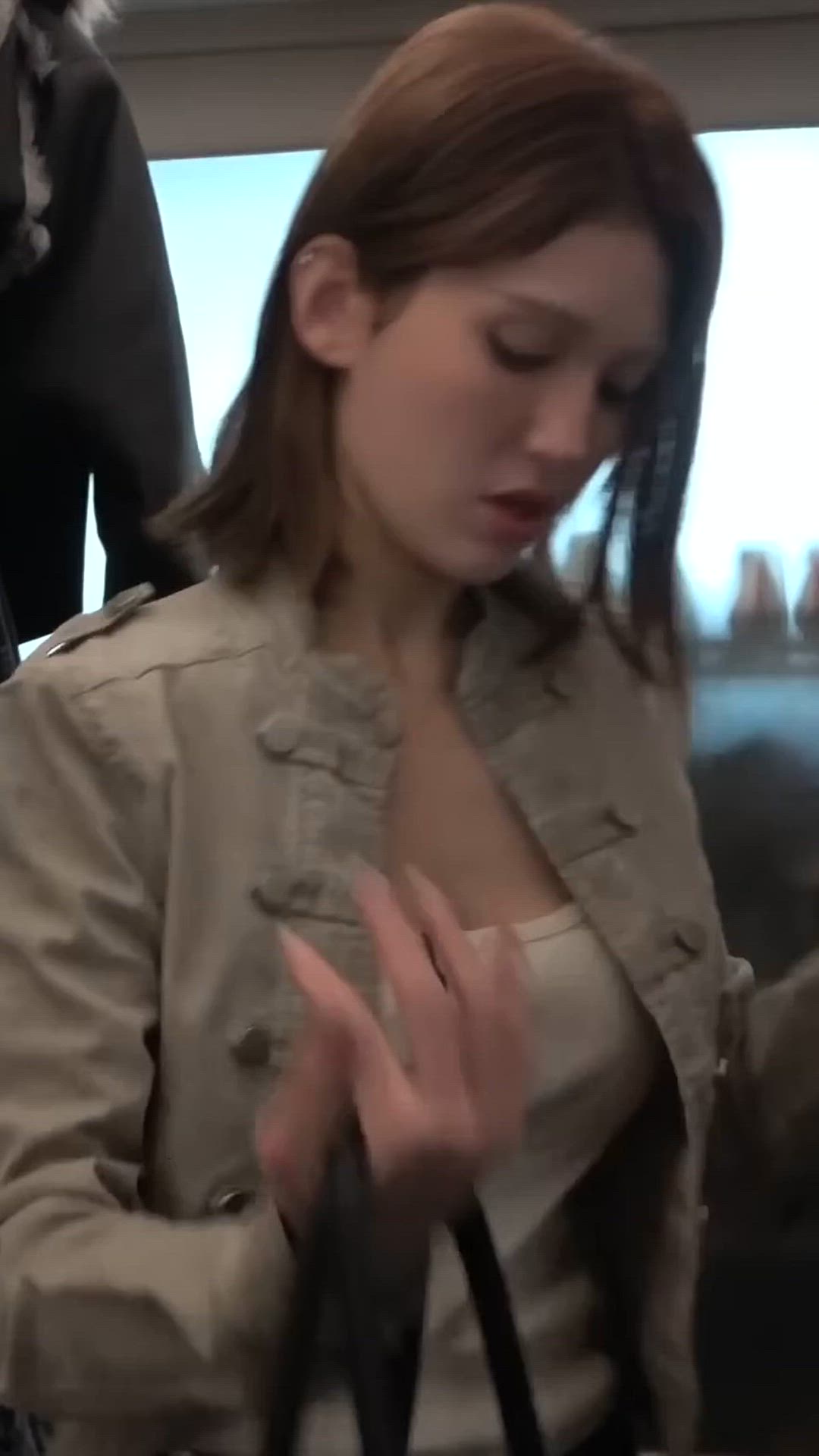 전소미는 편안하면서도 스타일리시한 캐주얼 룩을 선보입니다. 베이지 톤의 밀리터리 재킷과 밝은 이너웨어를 매치하여 내추럴한 매력을 강조합니다. 전소미는 세련된 분위기를 연출하며, 일상에서 활용하기 좋은 실용적인 패션을 보여줍니다.