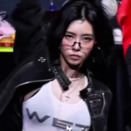Kep1er 다연은 강렬한 에너지가 돋보이는 힙하고 시크한 무대 의상을 선보였습니다. 전체적으로 블랙과 화이트 컬러를 중심으로 레드 포인트를 더해 강렬한 인상을 주며, 크롭 상의와 가죽 소재의 하의, 그리고 데님 재킷을 매치하여 힙한 스트리트 웨어 감성을 연출했습니다. 투명한 테두리의 안경과 실버 액세서리들이 더해져 개성 있는 스타일을 완성합니다.