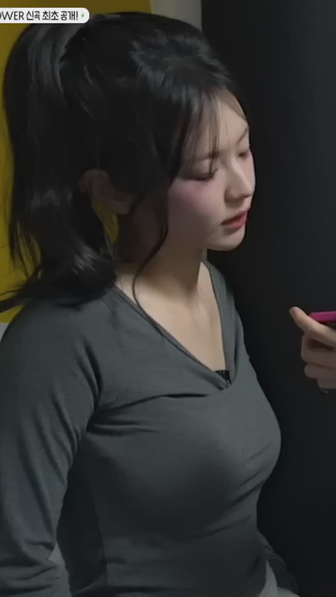 In the photo, QWER - Chodan presents a comfortable yet active everyday wear look. She is wearing a soft, fitted outfit that gently hugs her body, emphasizing a natural silhouette. The minimalist design, devoid of elaborate embellishments, highlights the appeal of wardrobe staples, contributing to a healthy and vibrant image even in her unadorned appearance. Her attire offers great inspiration for those who prefer practical styles that prioritize active comfort in daily life.