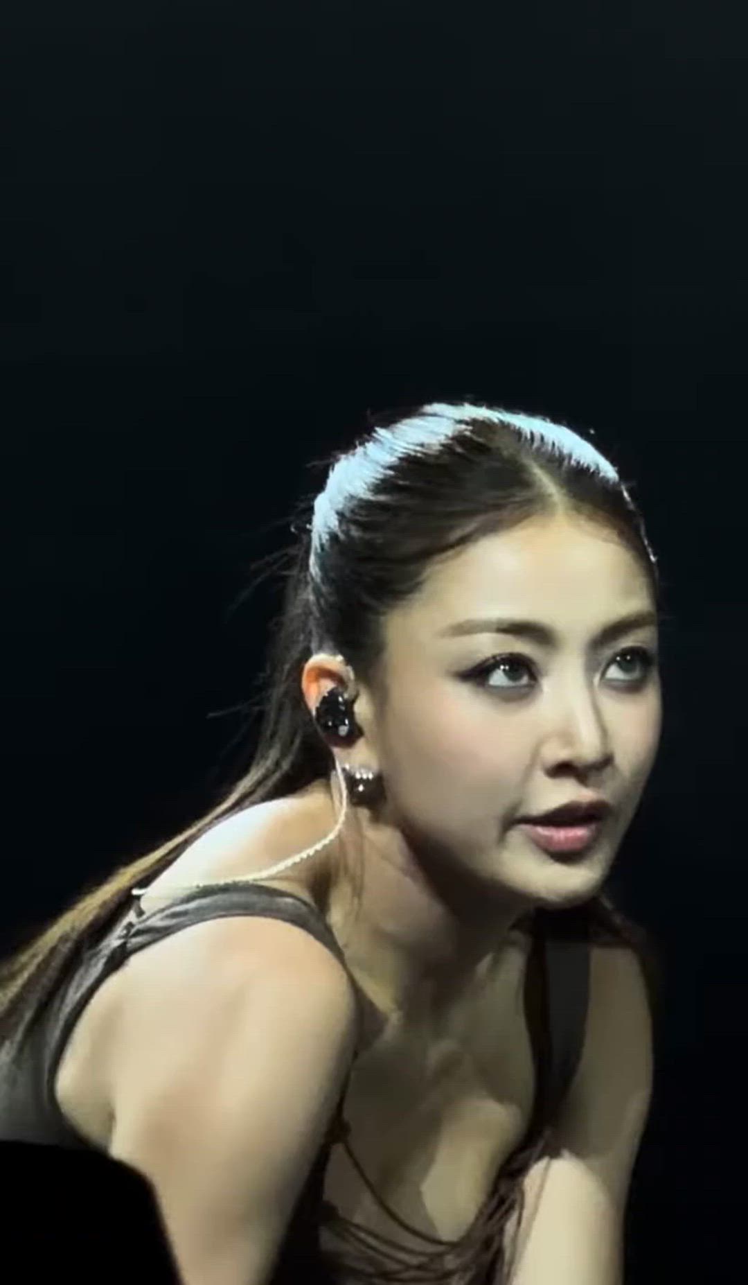 지효는 스테이지룩에 어울리는 강렬하면서도 고급스러운 디테일이 돋보이는 스타일을 선보였습니다. 다크 컬러의 슬리브리스 탑은 그녀의 건강미를 부각하며, 섬세한 스트랩 디테일이 더해져 시크하고 매혹적인 분위기를 연출합니다. 전체적인 의상은 세련되고 현대적인 글로벌 패션 트렌드를 반영하고 있습니다.