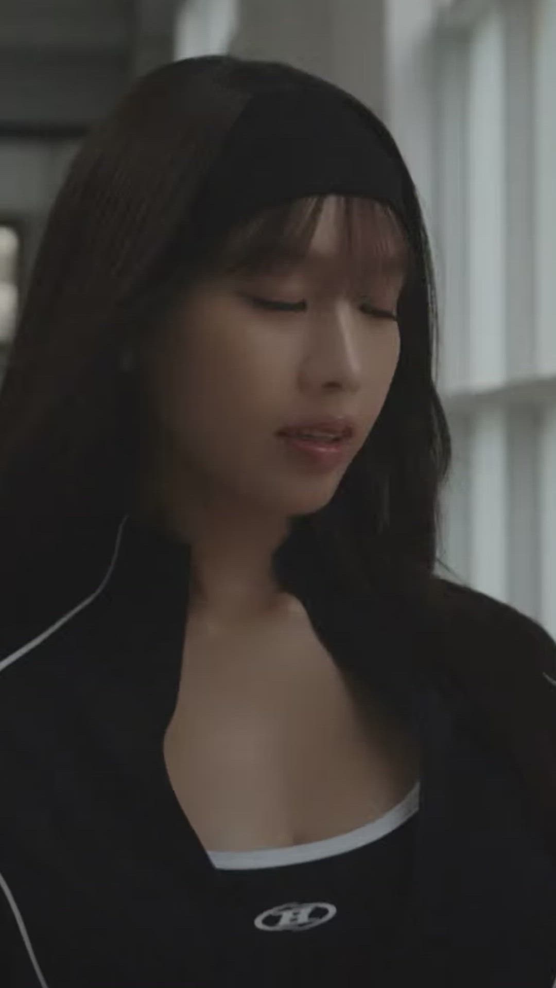 나띠는 스포티하면서도 트렌디한 애슬레저룩을 선보이고 있습니다. 전체적으로 블랙 컬러의 상의와 헤어밴드를 착용하여 시크한 분위기를 연출하며, Y2K 패션의 요소를 현대적으로 재해석한 모습입니다. 활동적인 스타일과 함께 편안함이 돋보이는 착장으로, 일상에서도 활용하기 좋은 퍼포먼스웨어의 매력을 보여줍니다.
