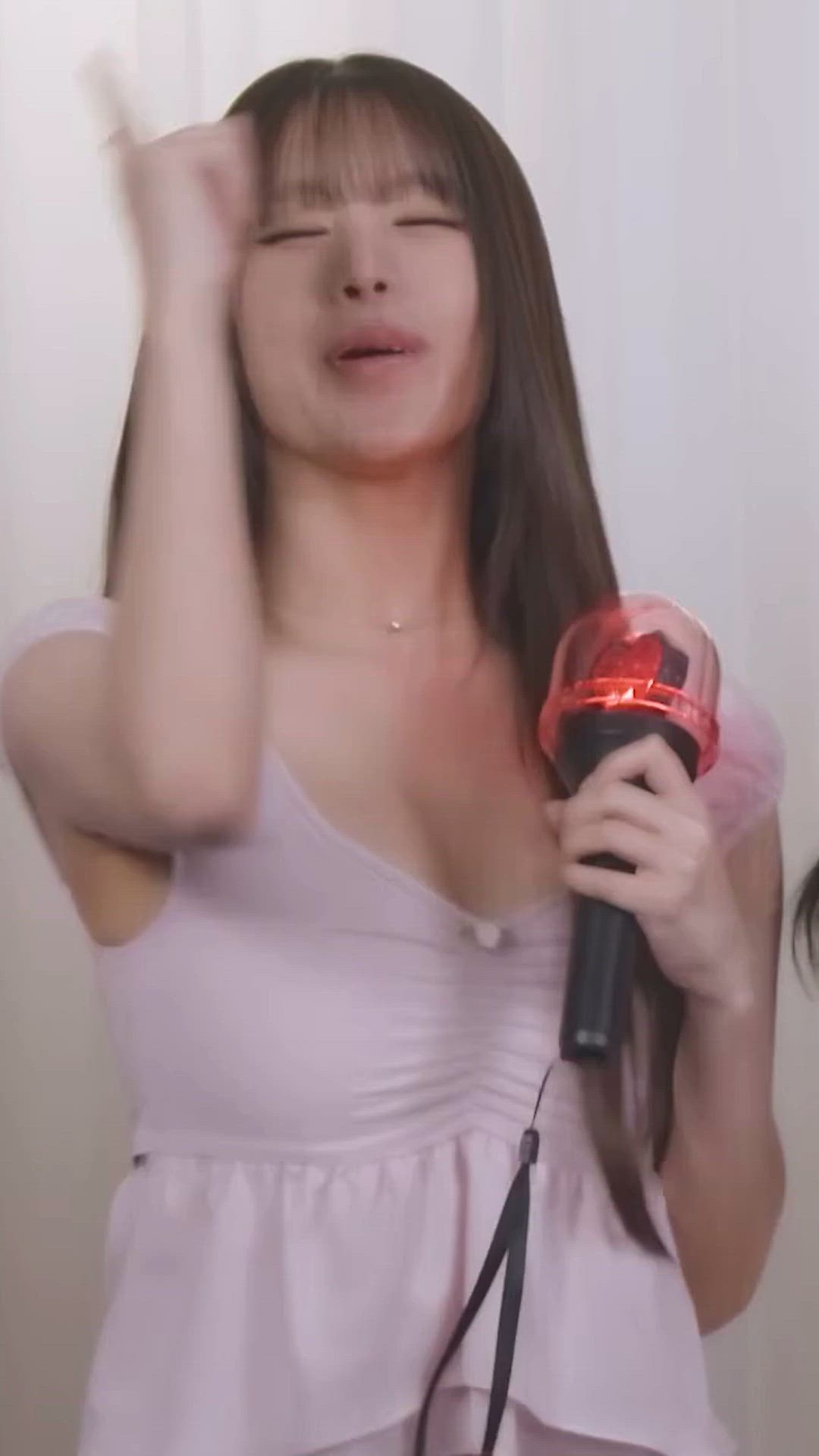 사진 속 나띠는 사랑스러운 연분홍색 미니 드레스를 입고 밝고 러블리 패션을 선보이고 있습니다. 브이넥과 퍼프 소매 디테일이 돋보이는 이 아이돌 의상은 그녀의 귀여운 매력을 한층 부각하며, 전체적으로 부드럽고 페미닌 스타일을 연출합니다.