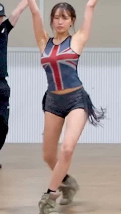 Natty는 영국 국기 패턴의 슬리브리스 탑과 프린지 디테일이 가미된 쇼츠를 매치하여 강렬한 퍼포먼스 룩을 완성합니다. 이번 스타일링은 역동적인 움직임을 강조하는 하이엔드 댄스웨어 감성과 Y2K 트렌드가 결합된 고단가 아이템들로 구성되어 있습니다.
