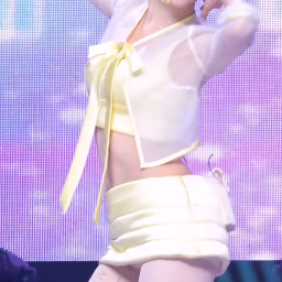 Irene는 파스텔 톤의 옐로우 컬러를 활용하여 사랑스럽고 화사한 무드를 연출합니다. 시어한 소재의 상의와 구조적인 디테일이 돋보이는 하의를 매치하여 아이돌 패션의 정석인 고급스러운 스타일링을 완성합니다.