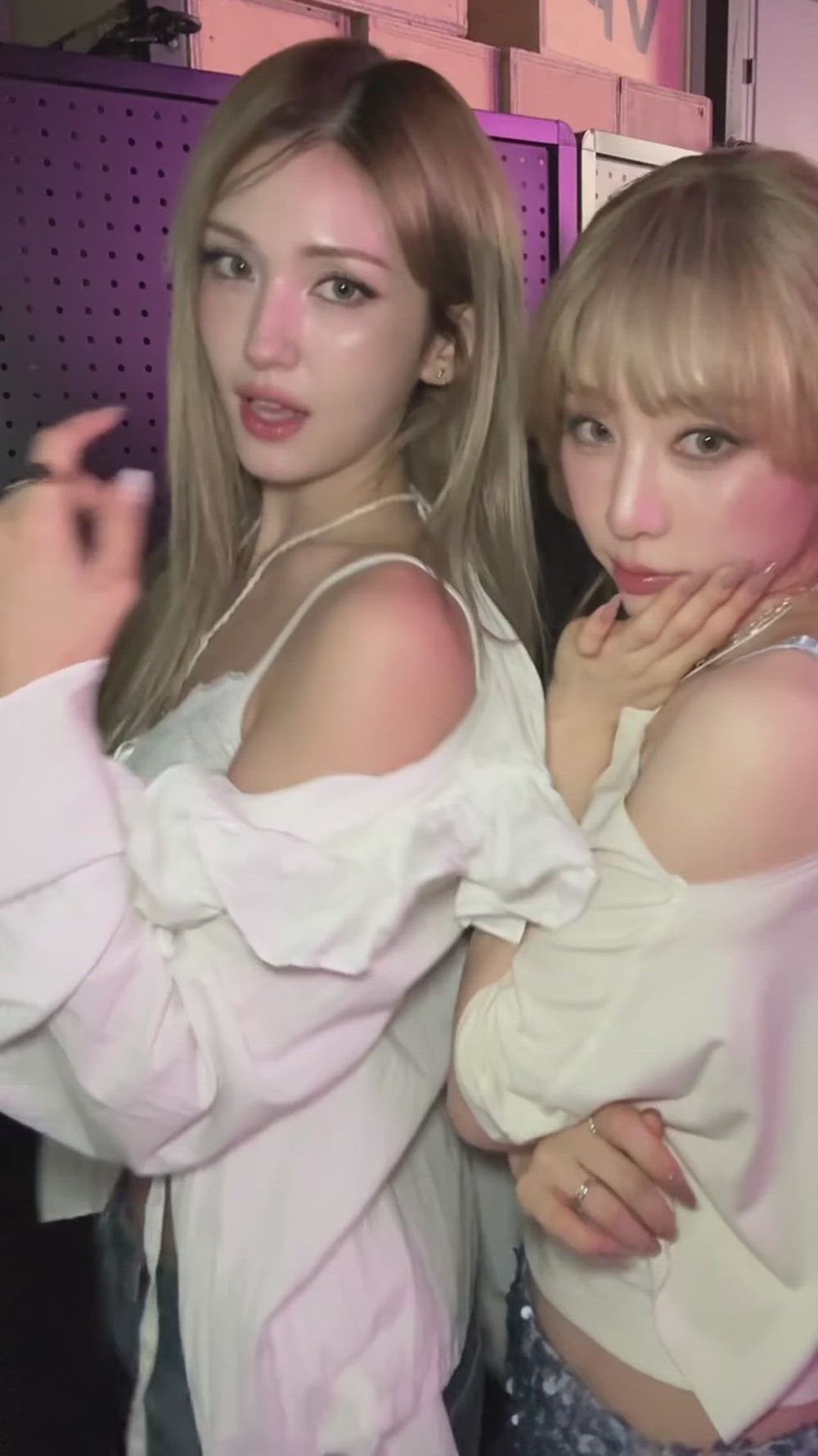 Jeon Somi layers a sleeveless top with delicate lace details under a loose-fit white shirt. This item creates a romantic and elegant mood similar to collections from Dior or Miu Miu.