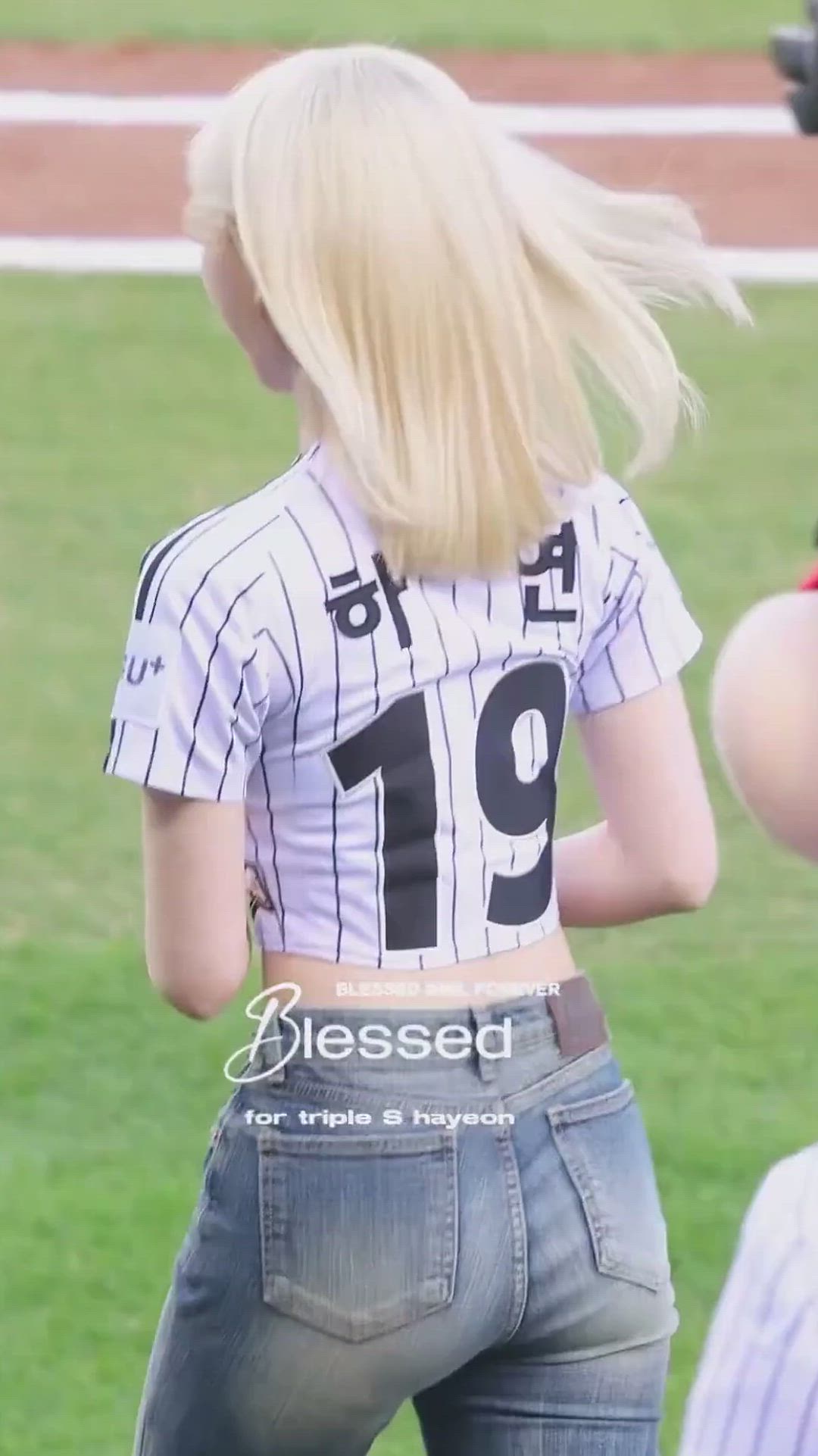 Hayeon은 스포티한 무드의 야구 저지를 크롭 기장으로 연출하여 경쾌하고 활동적인 스포티룩을 완성합니다. 여기에 슬림한 핏의 데님 팬츠를 매치하여 트렌디한 하이엔드 캐주얼 감성을 강조합니다.