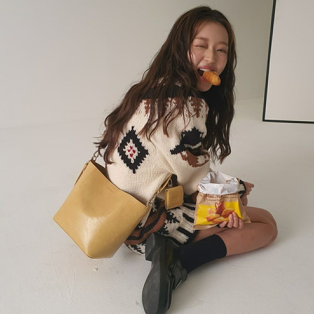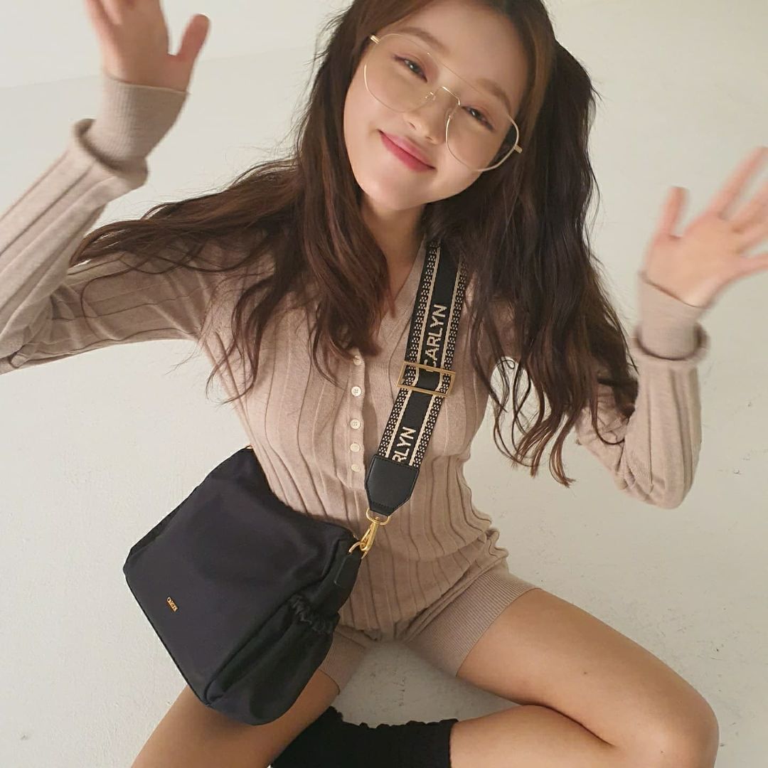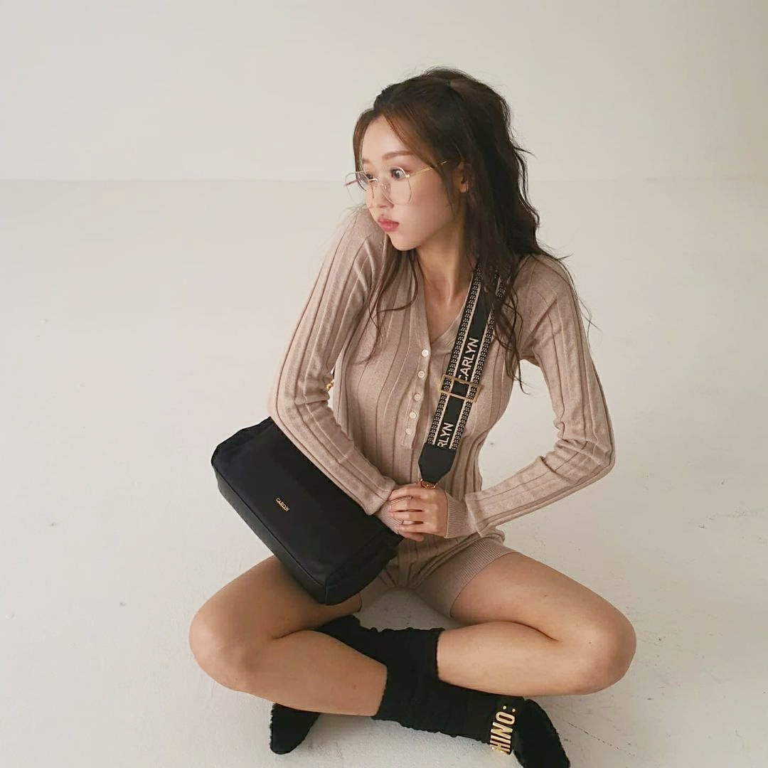 오마이걸 유아 골지니트 점프수트 달라붙은 ...라인