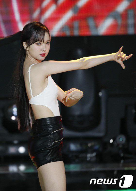 비비지, 오늘자 은하 과감한....흰 수영복(?) 무대 의상.JPG