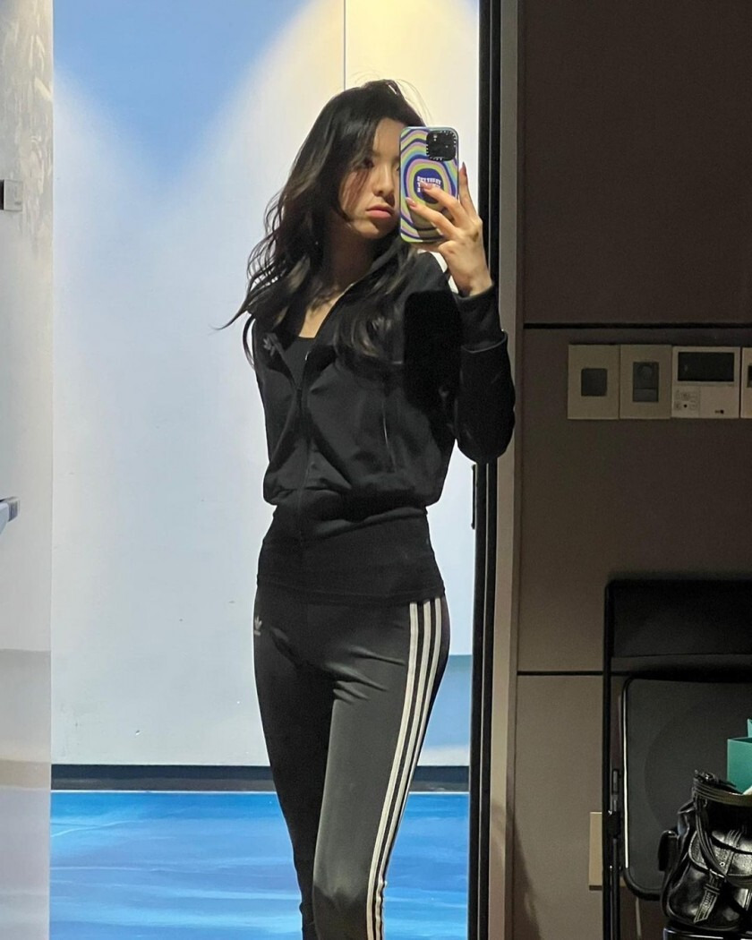타이트한 아디다스 츄리닝 핏 ITZY 유나 거울 셀카