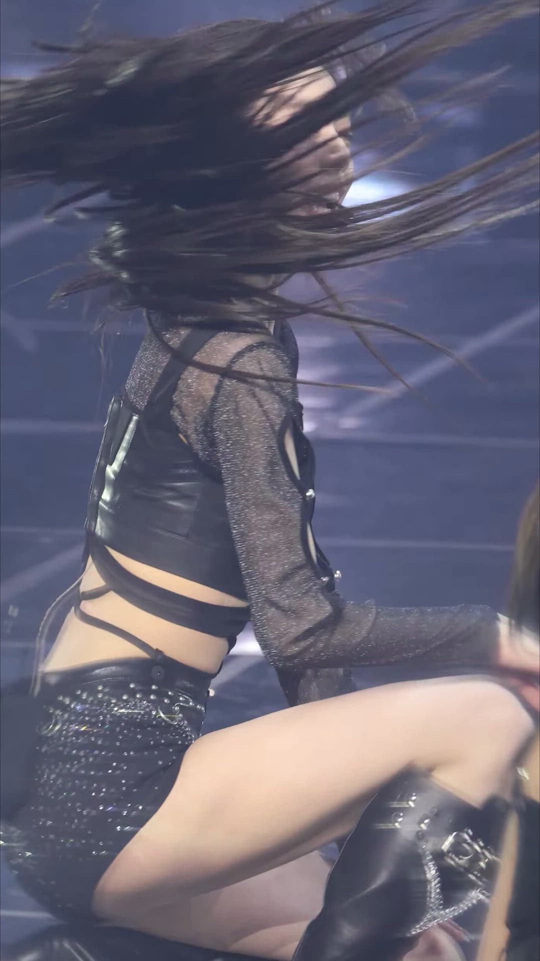 GIF-Lia (ITZY) 패션 분석 리아는 무대 위에서 강렬하고 카리스마 있는 분위기를 연출하는 패션을 선…