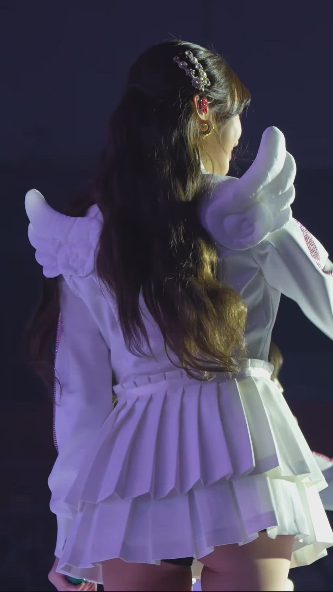 IVE - Wonyoung 패션 분석 원영은 천사 날개 디테일이 돋보이는 화이트 의상을 착용하여 무대 위에서…